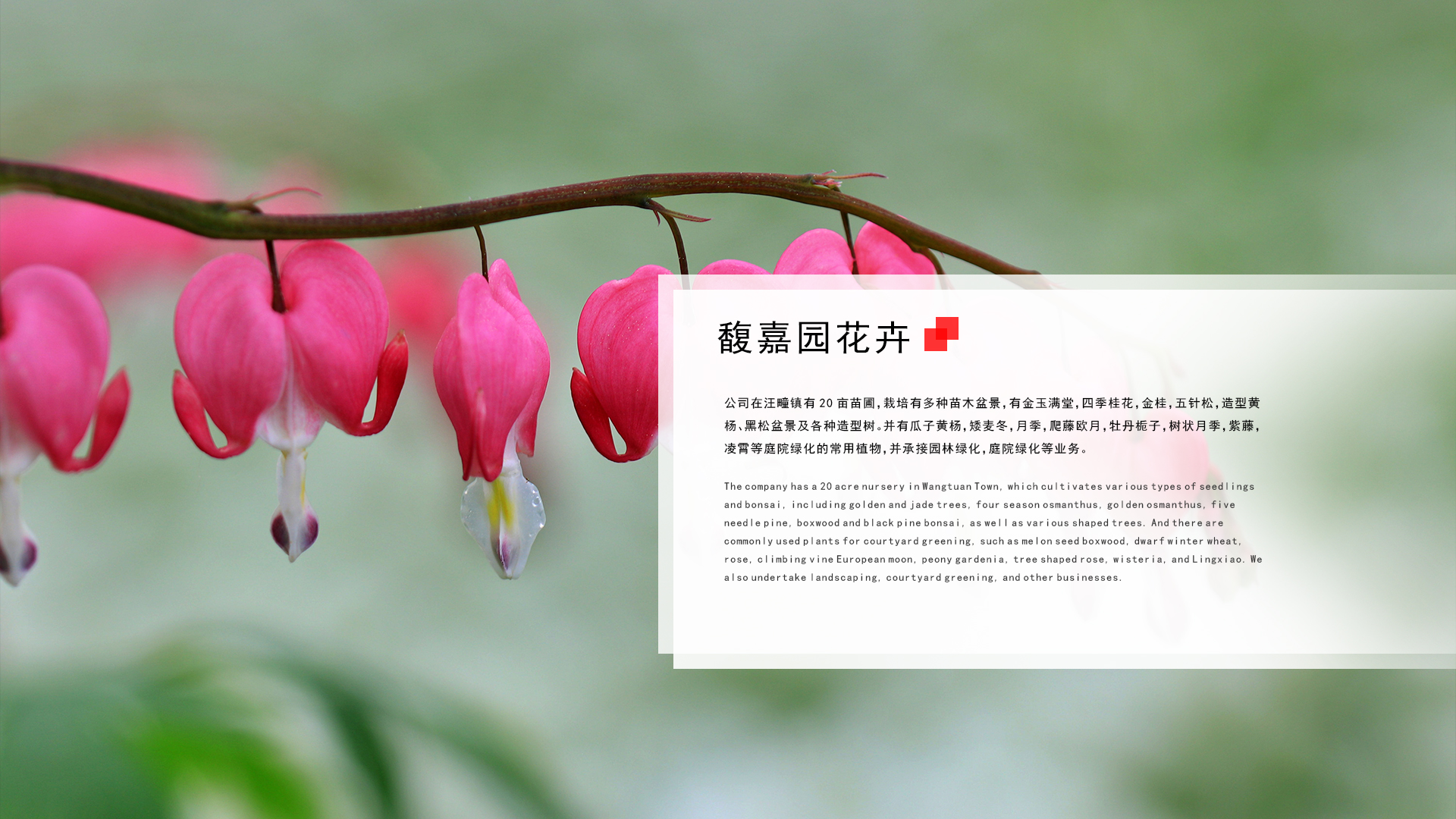 公司經營范圍廣泛,現與多家銀行及企事業單位達成綠植租賃服務,公司繼續承接綠植租擺及室內外綠化養護等
